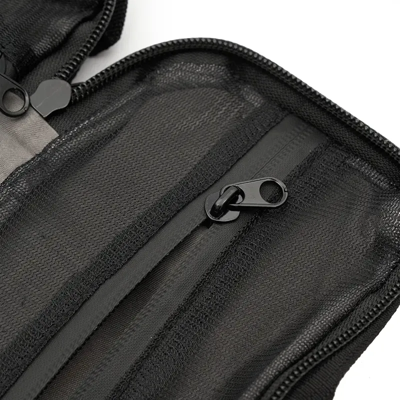 Neceser organizador de plástico reciclado oceánico. Fabricado con OceanGuard™, un tejido resistente, repelente al agua, elaborado con plástico oceánico reciclado certificado por OceanCycle. Cuenta con dos bolsillos internos de malla con cierre, asa superior y diseño plano que permite guardarlo fácilmente. Es ideal para organizar tecnología, cosméticos, herramientas u objetos esenciales del día a día en viajes, traslados o uso diario.