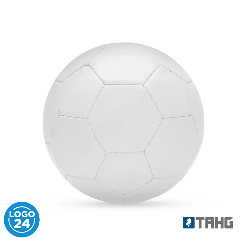 Pelota de fútbol realizada en PVC con terminación mate. De 32 gajos. Colores: gris, negro y blanco. Espesor 2.5 mm. y 400 grs. (5% tolerancia). Tahg.