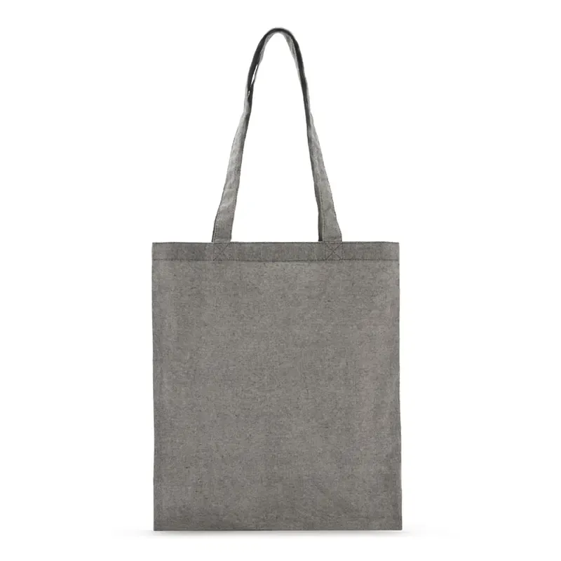 Tote bag fabricada en algodón de 4.5 oz (140gsm) en colores azul melange y gris melange.